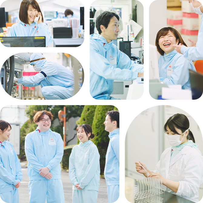 商品開発・製造・品質保証・生産管理・技術管理・総務、すべての職種が一丸となることが不可欠です。