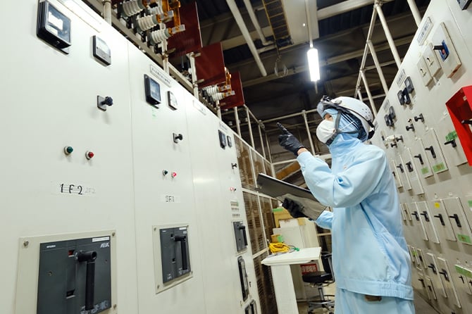 電気・ガス・水は製造に不可欠であり、止める訳にはいきません。その管理を任されている技術管理課ではその責任を日々感じながら保守業務にあたっています。また、工場の安全性、商品の信頼性は機械によって保たれている部分も大きく、その故障の予防や修理を行う際は、その後もきちんと動くよう想像して、細心の注意をもって業務にあたっています。