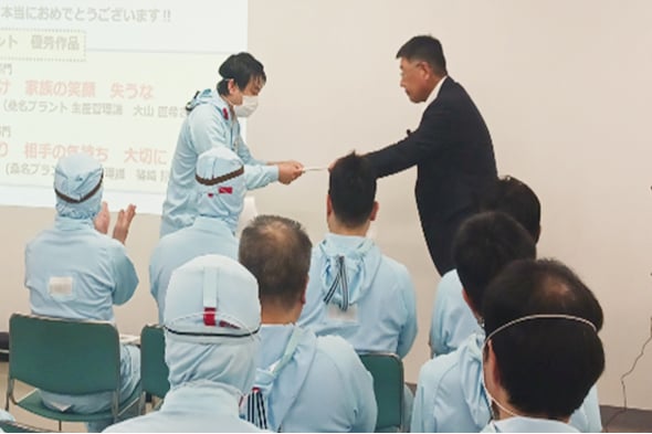 年に一度、全従業員で「働きがいのある職場」という方針を共有し、意識を統一する場としてコンプライアンス大会を開催しています。コンプライアンス勉強会は、2か月に一度実施し、ハラスメントや多様性など具体的なテーマを継続的に学ぶ場としています。更に、働きがい・飲酒運転をテーマとしたファミリー川柳を従業員や家族からも募集!(受賞者には賞状&景品のプレゼント)従業員一人ひとりが互いを尊重する企業風土の醸成を目指しています。